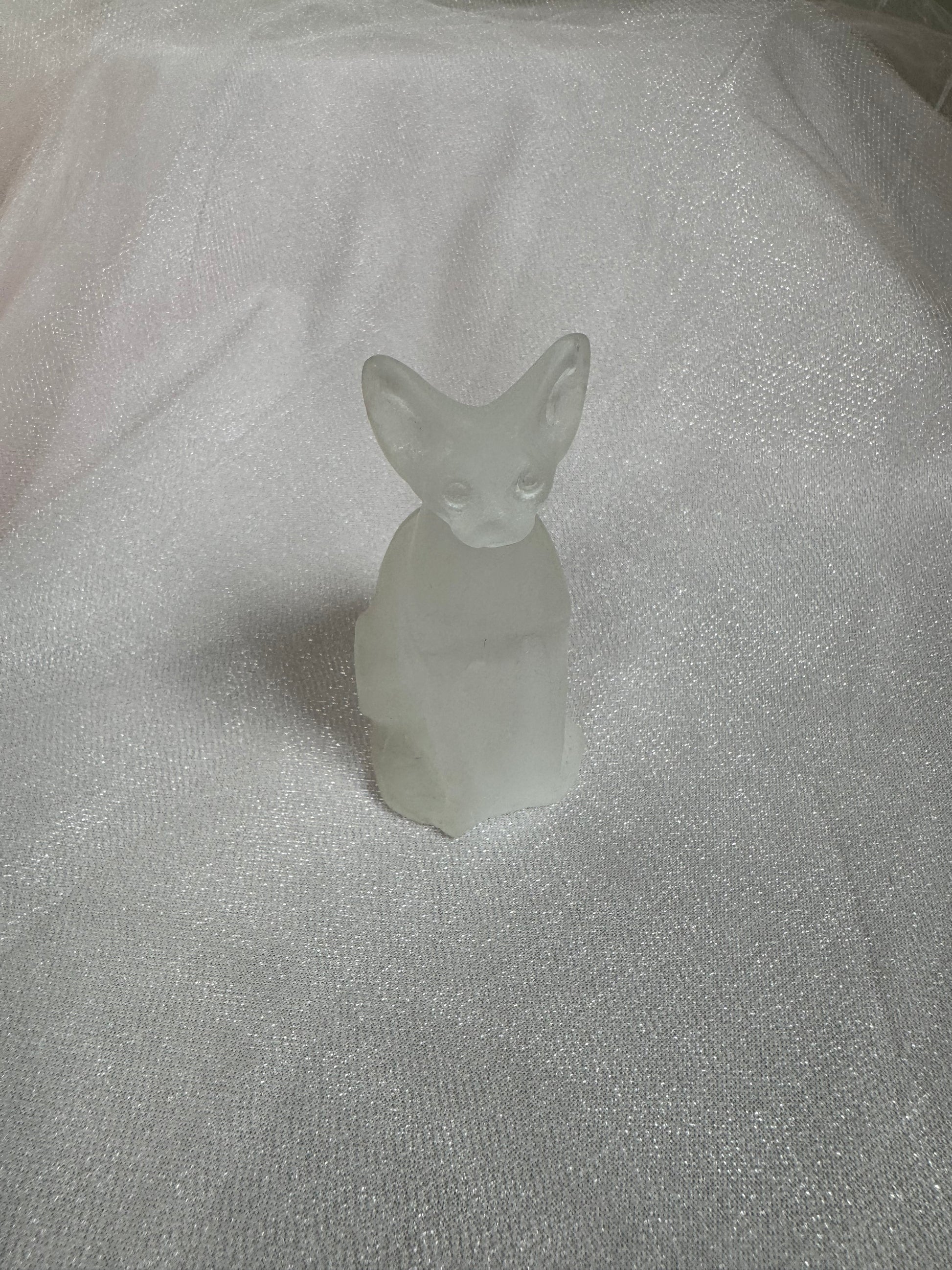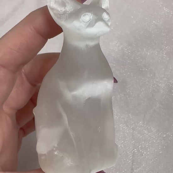 Selenite cat carvings combine the serene energy of selenite with the symbolic power of felines. Cats represent independence, intuition, and spiritual awareness across many traditions. Selenite, a crystalline form of gypsum, is valued for its clarity and purifying properties. This carving merges both energies—the cat's grace and mystery with selenite's reputation for mental clarity and spiritual alignment. Whether displayed as a meditation focal point, altar piece, or decorative accent, a selenite cat serves as a gentle reminder to trust your instincts and embrace your inner wisdom. Each carving is naturally unique, making it a meaningful addition to any crystal collection or sacred space.